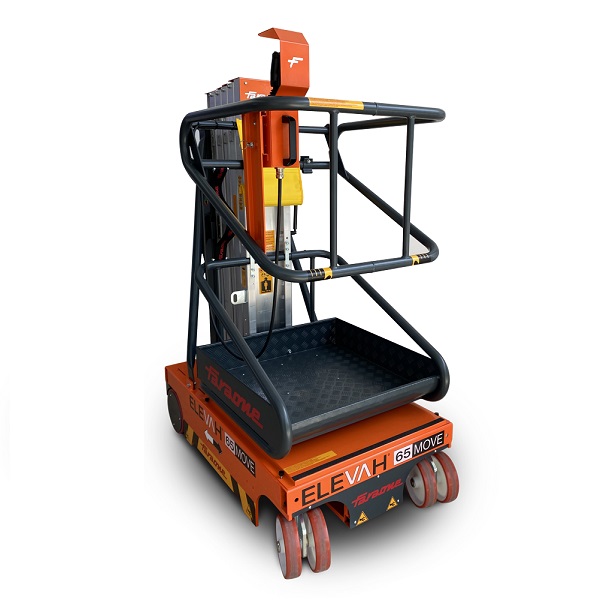 Elevah 65Move Light est une plateforme compacte avec un poids léger et une hauteur maximale de travail de 6,3m. Cela la rend idéale pour l'entretien des théâtres, musées, salles de congrès, salles de sport et lieux avec sols délicats ou limites de capacité.