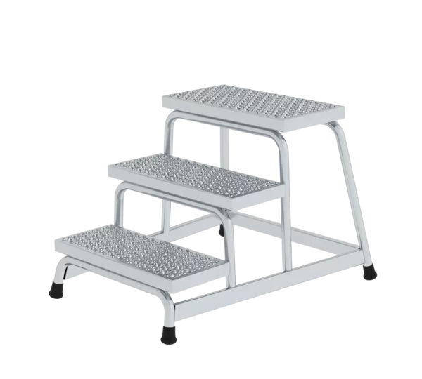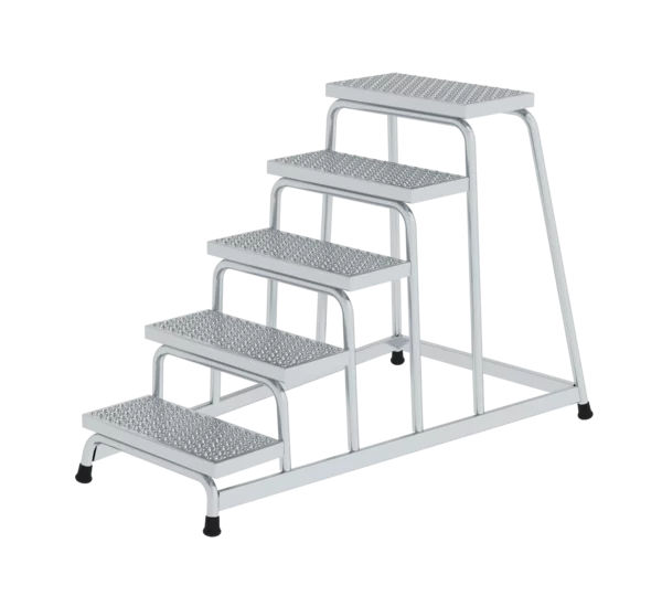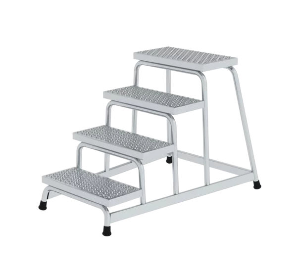 - Marches profondes de 220 mm et grande surface de marche en tôle d’aluminium perforée avec effet antidérapant R13 certifié