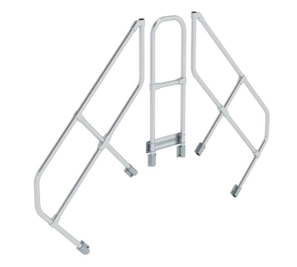 - Deuxième main courante en option (nécessaire en cas d’écart par rapport au mur > 120 mm selon la norme DIN EN ISO 14122-3)